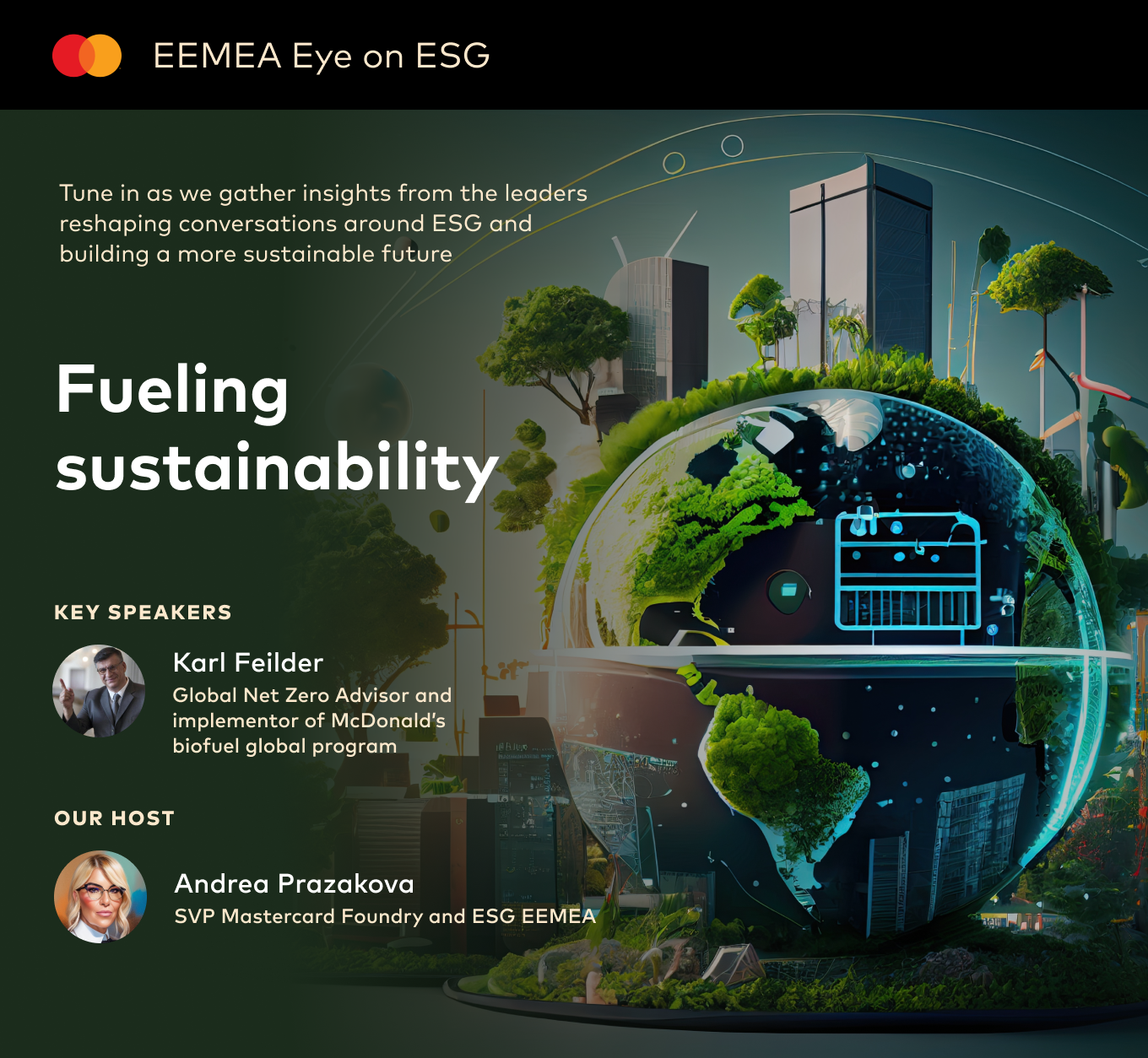 In our second episode of Mastercard’s Eye on Sustainability podcast, we hear from Karl Feilder, Global Net Zero Advisor and Implementor of McDonald’s biofuel global program, who challenged himself to save our species. He discusses the importance of sustainability and innovation, and the responsibility of big companies to take up the call for to drive a more sustainable future