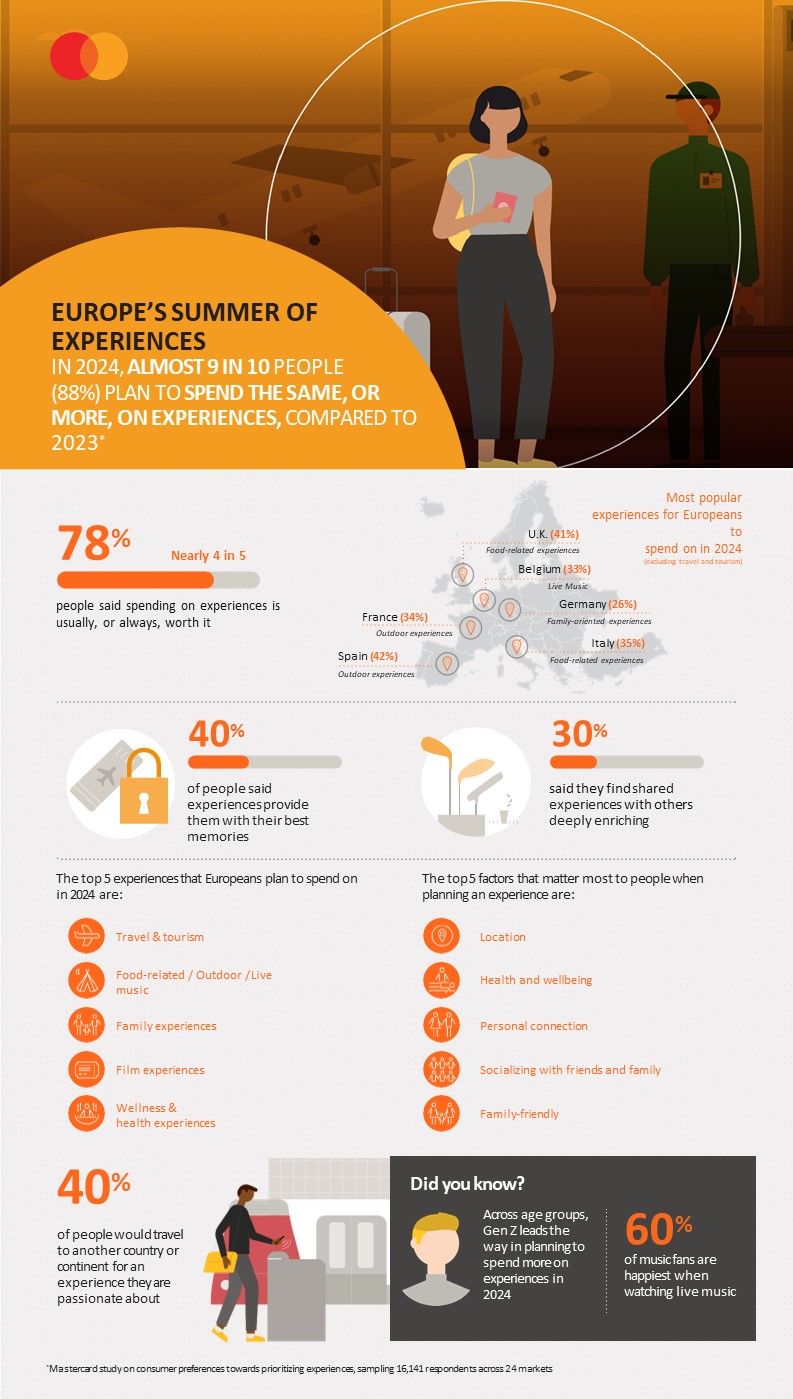 I et år, hvor adskillige globale sportsbegivenheder, musikturnéer og internationale filmfestivaler finder sted i Europa, offentliggør Mastercard nye undersøgelser, der undersøger, hvad der driver folk til at prioritere at bruge penge på oplevelser i dette globale centrum for turisme.