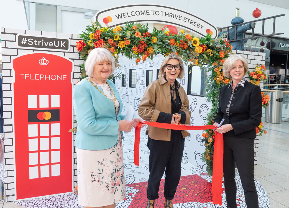 Mayor of Gateshead, Councillor Dot Burnett, Retail Guru Mary Portas and Marcia Clay, Mastercard open Thrive Street.