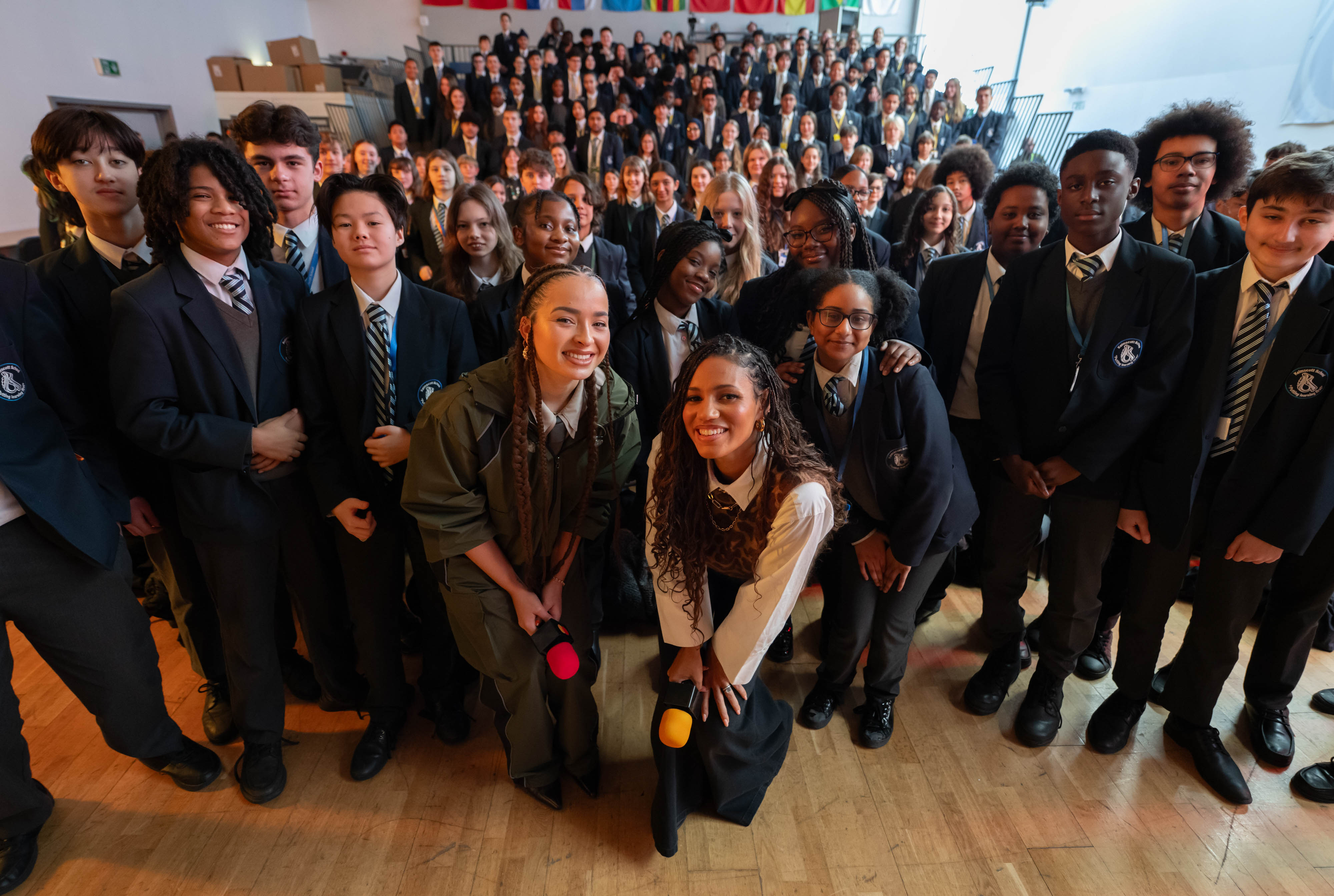 Singer-songwriter and BRIT School alumnus, Ella Eyre, visited Kelmscott Secondary School in Walthamstow, London, to launch Mic Drop Talks, wowing students and teachers with a surprise performance of her hit songs Waiting All Night and Came here for Love. Ella then talked with students about the many and varied career paths available to them in the creative industries.
