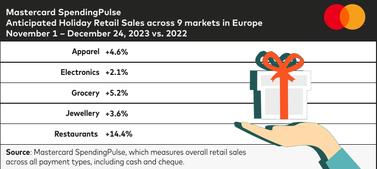 Retail and hospitality spend across 9 European markets expected to grow this holiday season