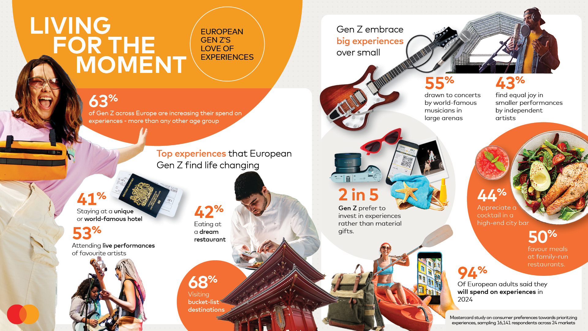 November 26, 2024 | Waterloo, BelgiumHe’s not going to say no to the latest AirPods. She’s not going to turn down that designer weekender bag. But a new Mastercard survey exploring the preferences of Europe’s Gen Z reveals those gifts may be merely the means to an end: the experience itself.