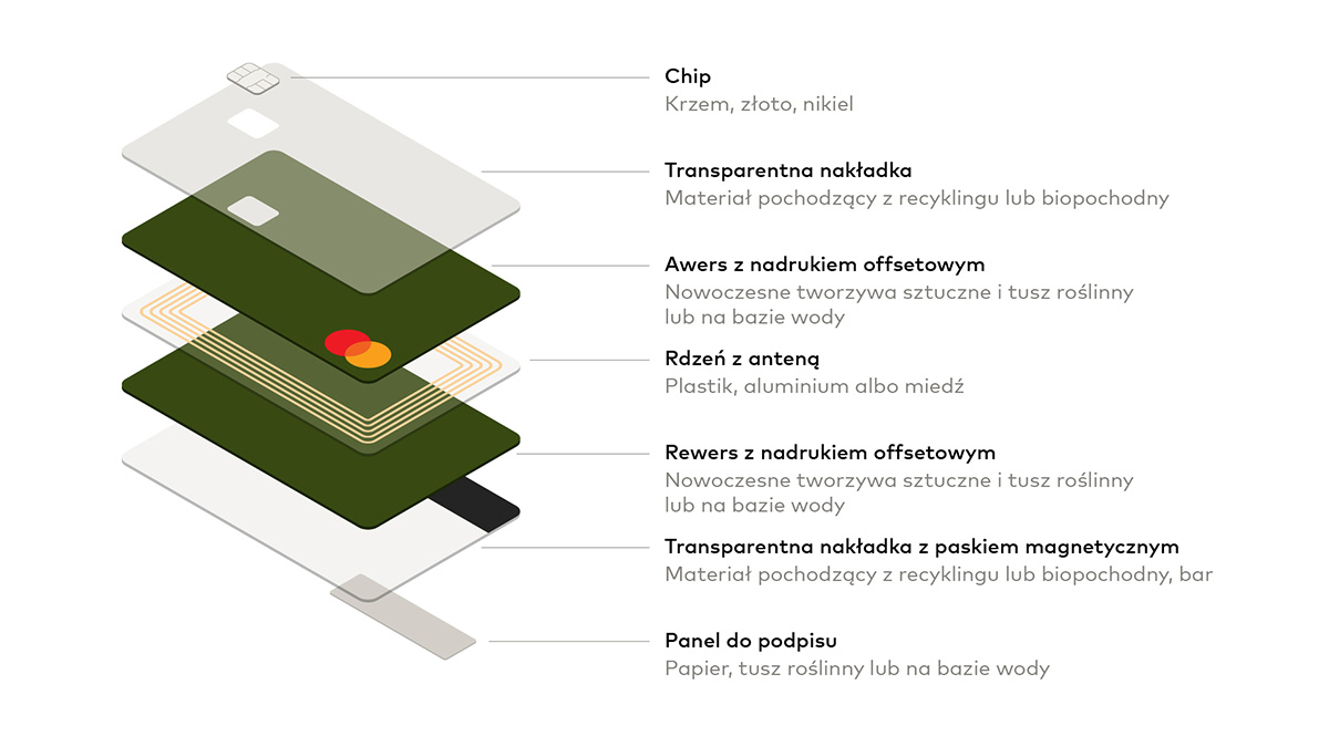 Od 1 stycznia 2028 roku wszystkie nowe, plastikowe karty płatnicze Mastercard będą musiały być wykonane z bardziej zrównoważonych materiałów - w tym z tworzyw sztucznych pochodzących z recyklingu lub biopochodnych takich jak rPVC, rPET czy PLA[1]. Karty, przed wprowadzeniem do użytku, zatwierdzane będą w ramach specjalnego programu certyfikacji. Mastercard będzie wspierać swoich globalnych partnerów – wydawców kart, w procesie odchodzenia od pierwotnego PVC.