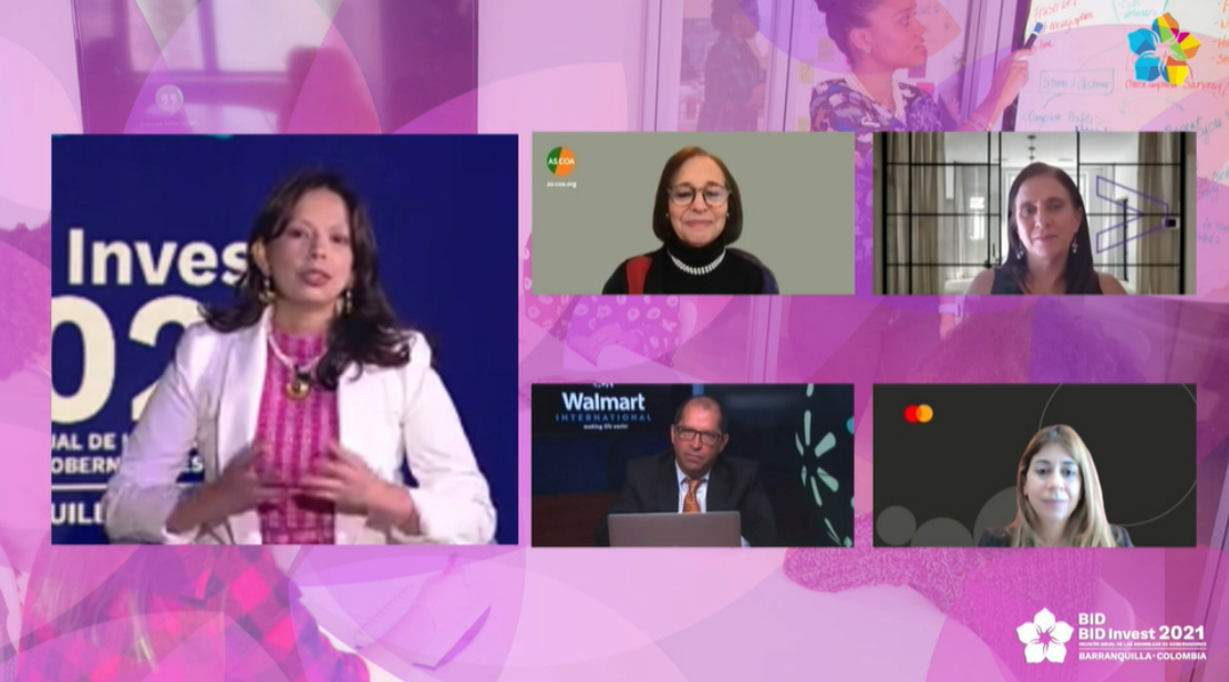 La Vicepresidente Ejecutiva del BID, Reina Mejía Chacón, hizo el anuncio esta mañana durante la Asamblea Anual de Gobernadores del BID. El anuncio fue seguido de un seminario transmitido en vivo, en el cual los líderes del sector privado discutieron el valor del nuevo programa. El seminario fue moderado por la Jefa de Gabinete y Asesora Ejecutiva de la Oficina de Presidencia del BID, Jessica Bedoya. Los panelistas Gheidy Gallo Santos, de la Oficina del Presidente de Colombia, Alejandra Ferraro de Accenture, Kiki del Valle de Mastercard, JP Suarez de Walmart, y Susan Segal del Council of the Americas destacaron diferentes instrumentos e iniciativas que promueven más y mejores oportunidades económicas para mujeres emprendedoras, y recalcaron el potencial del programa.