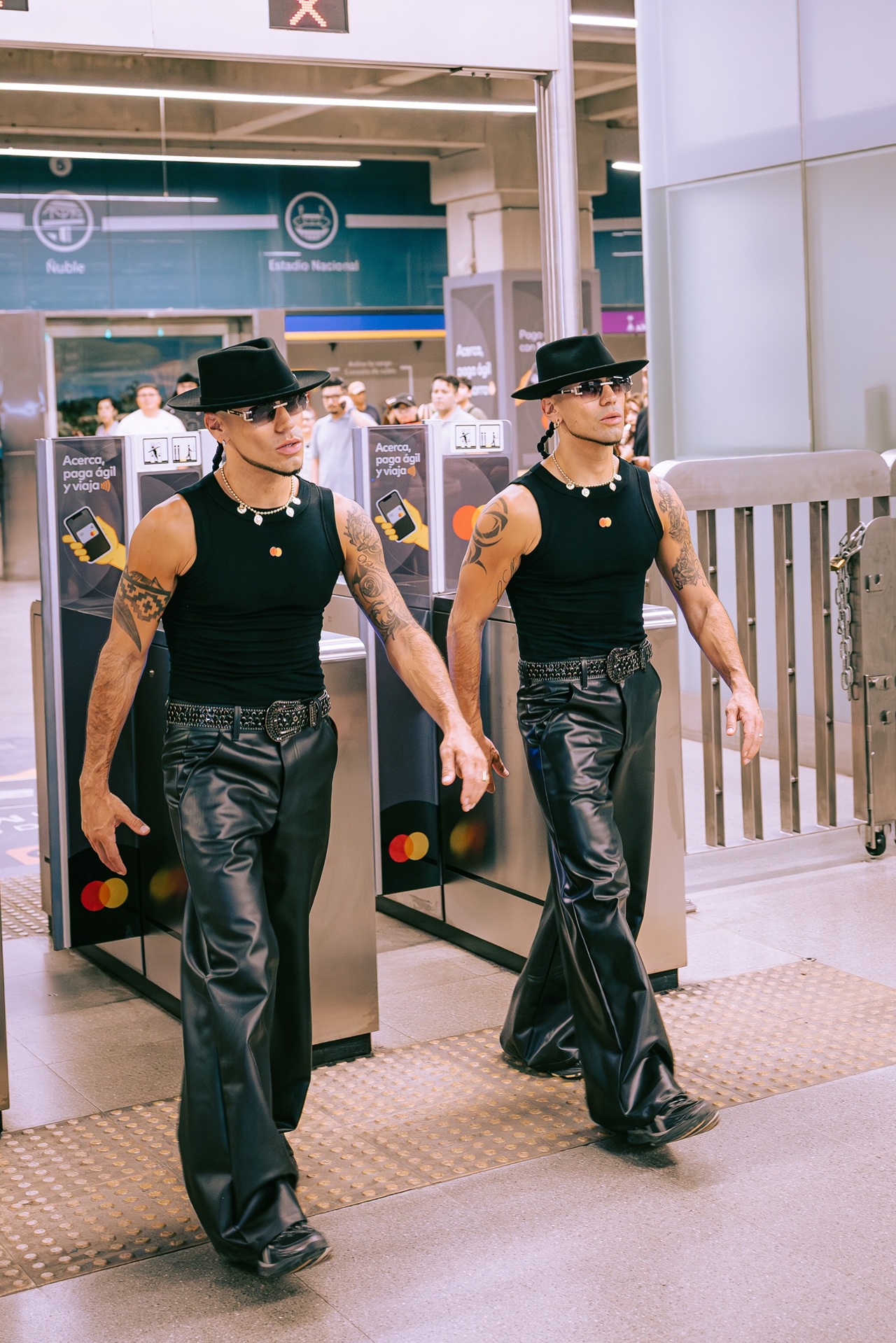 • Raúl y Gabriel Peralta se prestaron en el Metro, junto a sus bailarines y pasajeros en el marco de la campaña de cashback de Mastercard que entrega descuentos hasta el 50% del total de su pasaje a quienes paguen con sus tarjetas físicas y billeteras digitales.