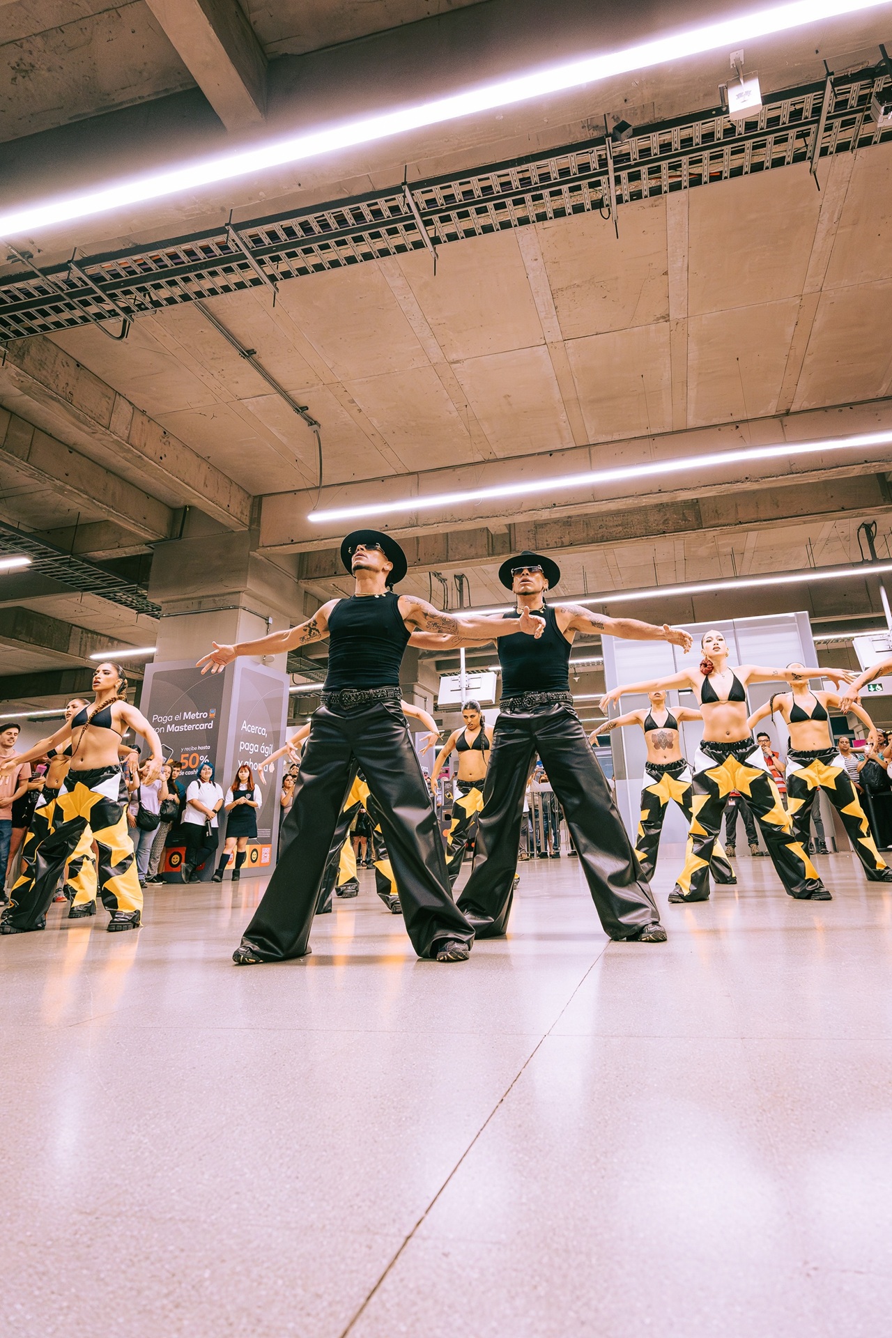 De forma totalmente soprevisa, a eso de las 14:40 horas, los hermanos Gabriel y Raúl, más conocidos como Power Peralta, junto con sus bailarinas, comenzaron a mostrar su talento frente a todos los presentes a esa hora en el Metro de Santiago, animándolos al ritmo de la canción "Pégate” y “Jump Around”, entre otros, animando a que la gente comience a usar sus tarjetas Mastercard para pagar en el metro y tren Nos.