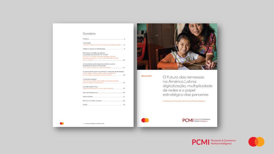 A Mastercard fez uma parceria com a PCMI, empresa de inteligência de mercado do setor de pagamentos, para avaliar as remessas na América Latina. Os mercados estudados incluem México, El Salvador, Guatemala, Honduras, Brasil, Argentina e Colômbia, em comparação com um contexto global mais amplo. Essa pesquisa foi realizada entre outubro e dezembro de 2023 e consistiu na obtenção de recursos de dados públicos e na realização de 10 entrevistas aprofundadas com seis empresas, incluindo bancos, operadoras de transferência de dinheiro (MTOs) tradicionais e somente digitais, varejistas, facilitadores de tecnologia e executivos da Mastercard.