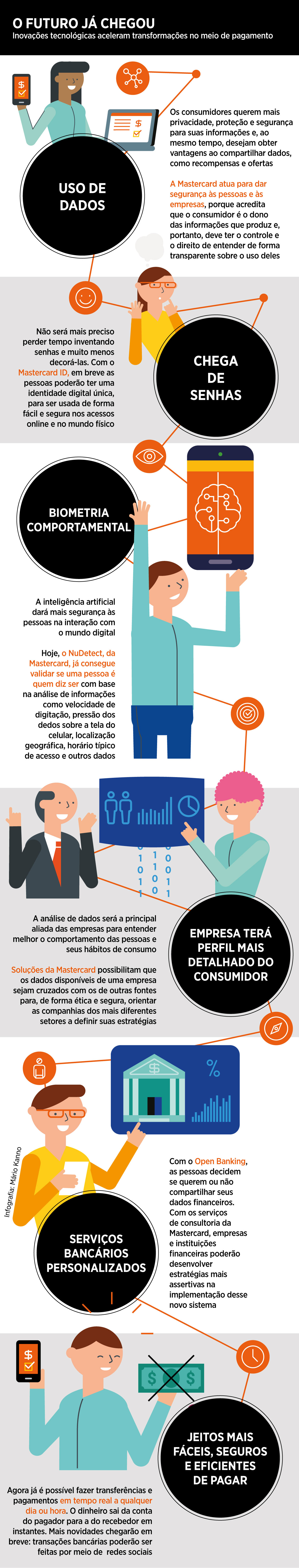 A Mastercard, por exemplo, já utiliza tecnologias como Inteligência Artificial, biometria comportamental e análise de dados para que as empresas possam oferecer uma melhor experiência para seus consumidores. Essas tecnologias mudaram a forma como as pessoas se relacionam com as empresas, fazem compras e pagamentos. Mas isso é só o começo.