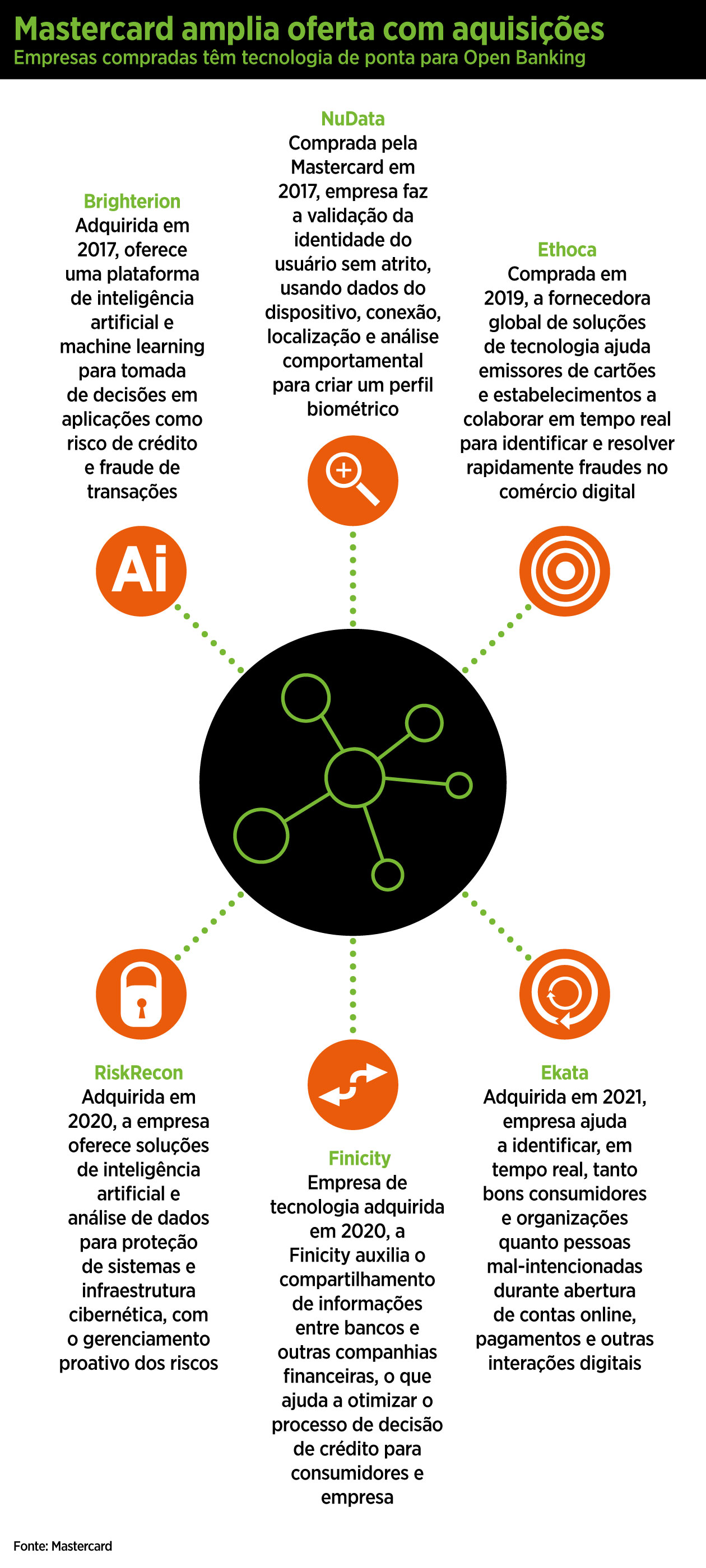 A Mastercard atua em Open Banking também nos Estados Unidos e, para ampliar sua oferta de soluções, comprou, no ano passado, a empresa de tecnologia Finicity, especializada no compartilhamento de informações entre bancos e outras companhias financeiras. A Finicity ajuda a otimizar o processo de decisão de crédito tanto para consumidores como para empresas e processa mais de 80% dos empréstimos imobiliários realizados no país.