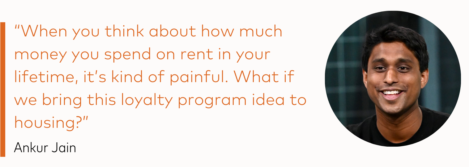 “When you think about how much money you spend on rent in your lifetime, it’s kind of painful,” he says. “I thought: What if we bring this loyalty program idea to housing and then use it as a way to give Americans a path to homeownership?”