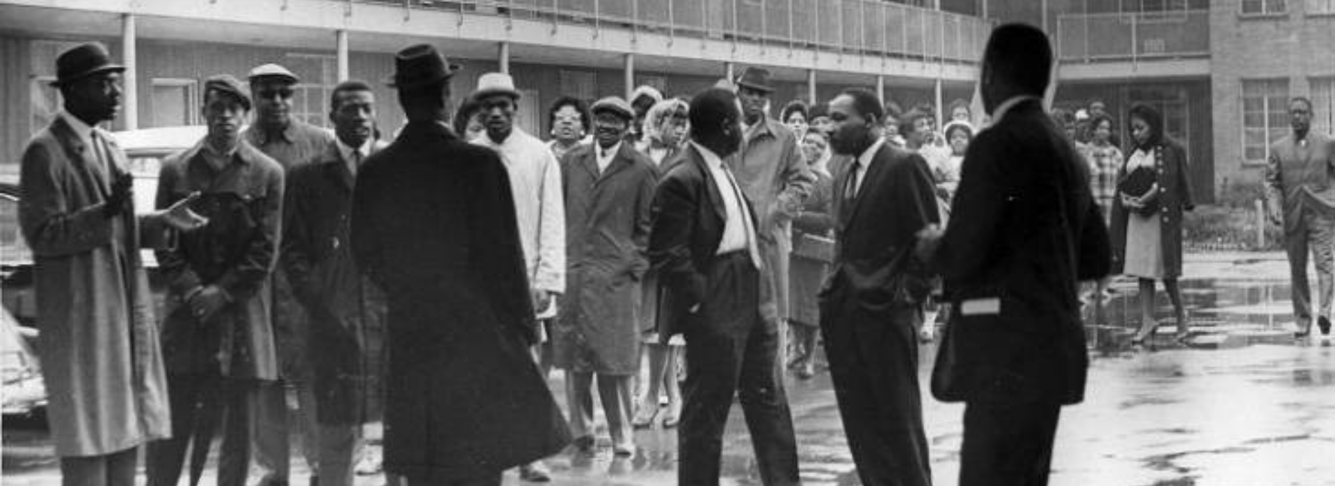 Banner photograph, top: Martin Luther King, Jr., second from right in foreground, stands outside Gaston Motel in 1963 in a surveillance photo taken by the Birmingham, Ala., Police Department. The motel was the epicenter for the direct action campaign to desegregate Birmingham, which civil rights organizations believed would have national repercussions. (Courtesy of Birmingham, Ala. Public Library Archives)