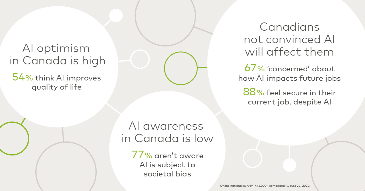 Most Canadians are upbeat about AI and believe it will start to enhance their lives. A recent Mastercard Canada survey shows 54% of respondents are optimistic about the technology.
