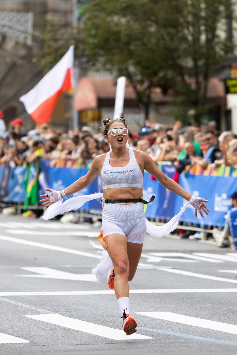 Alexi Pappas at mile 16 of the New York City Marathon. (Photo credit: Jonathan Heisler)