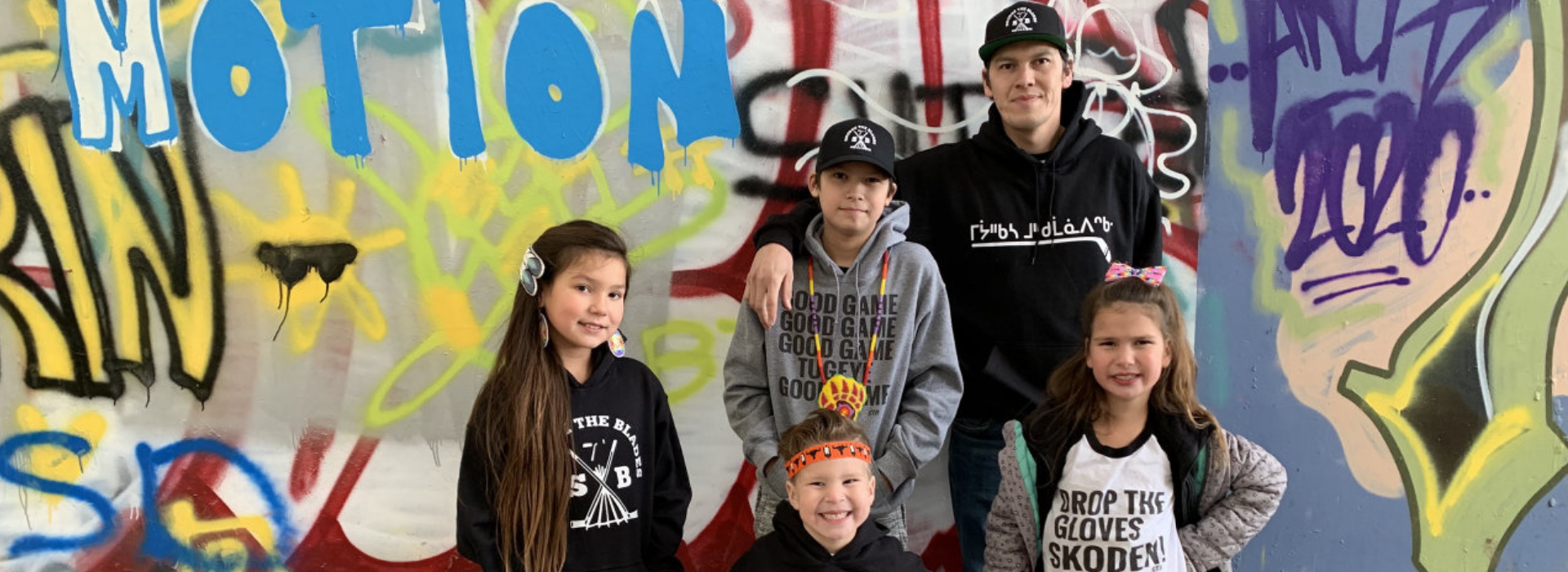 Banner photo: Harlan Kingfisher, the founder of Smudge the Blades, with his four children, sporting items from his hockey apparel line. (Photo courtesy of Harlan Kingfisher)
