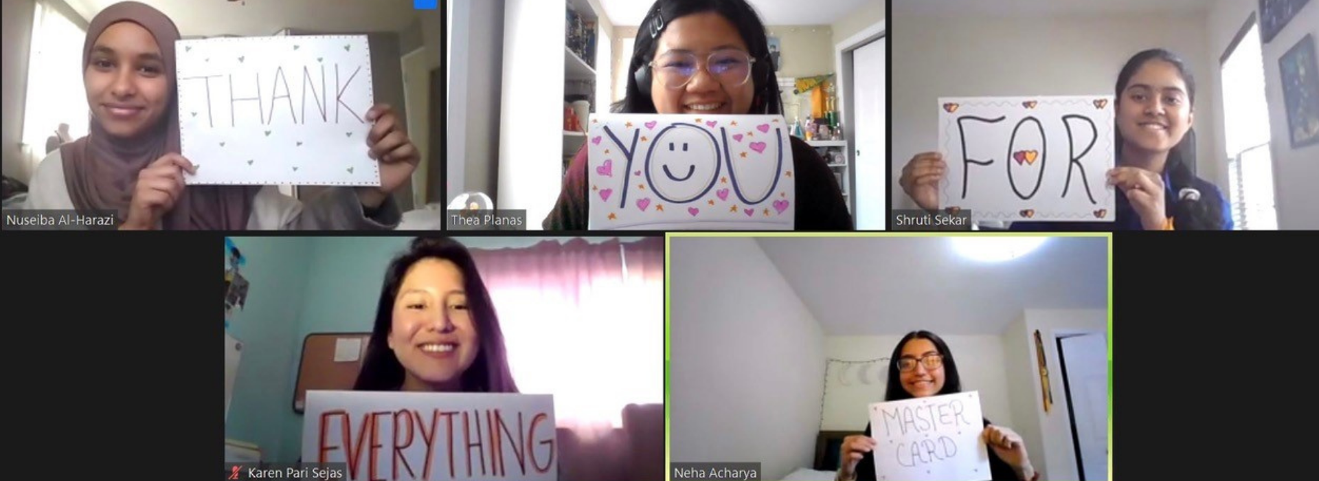 Banner photo, clockwise from top left: Nuseiba Al-Harazi, Thea Planas, Shruti Sekar, Neha Acharya and Karen Pari Sejas, all took part in Break Through Tech's winter Sprinternship at Mastercard, lending their skills to real-world projects and gaining work experience.