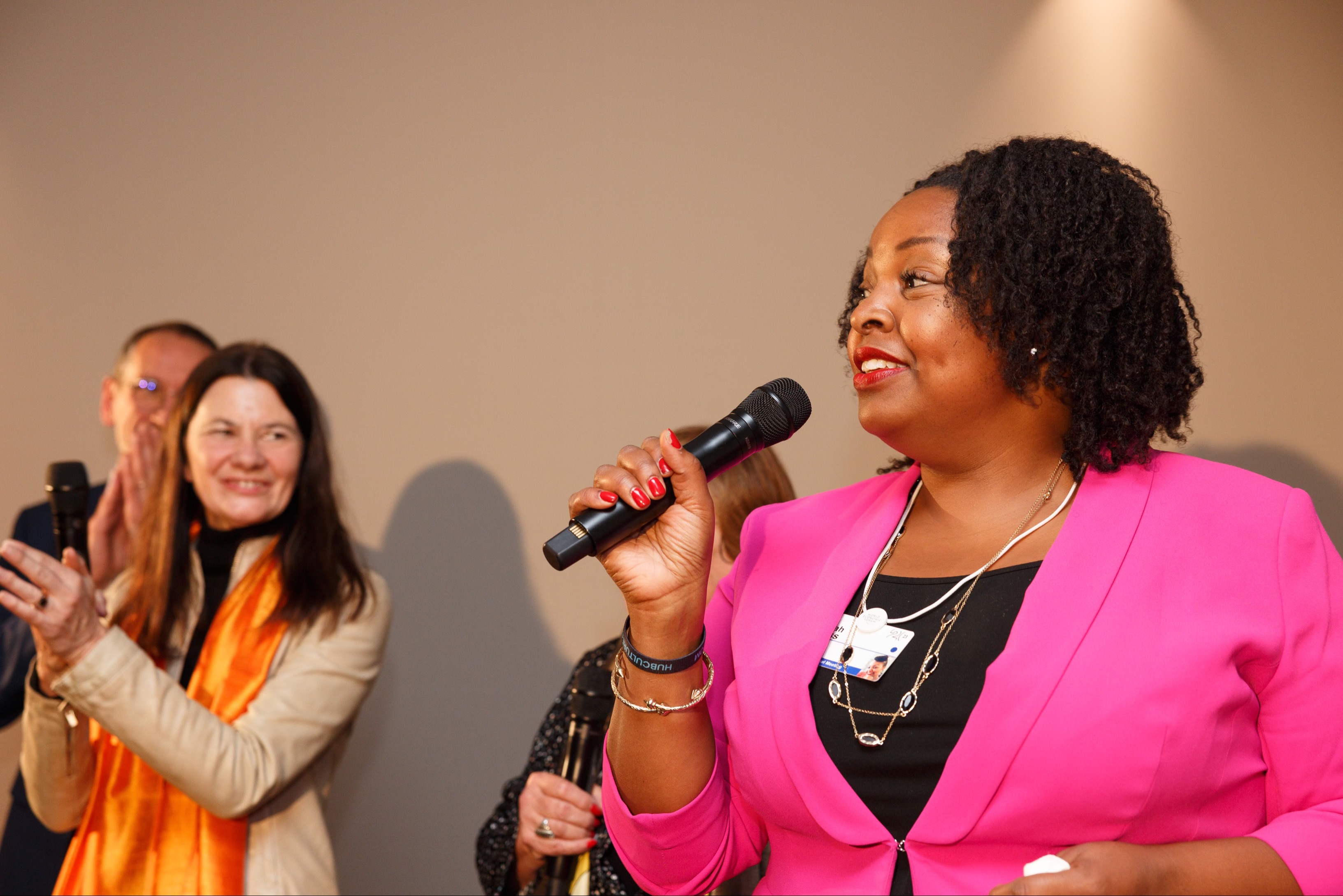 At Davos, Mastercard's Salah Goss highlighted the company's $500 million commitment to reduce the racial opportunity gap in the U.S. (Photo: Lia Mausolf/Mastercard)
