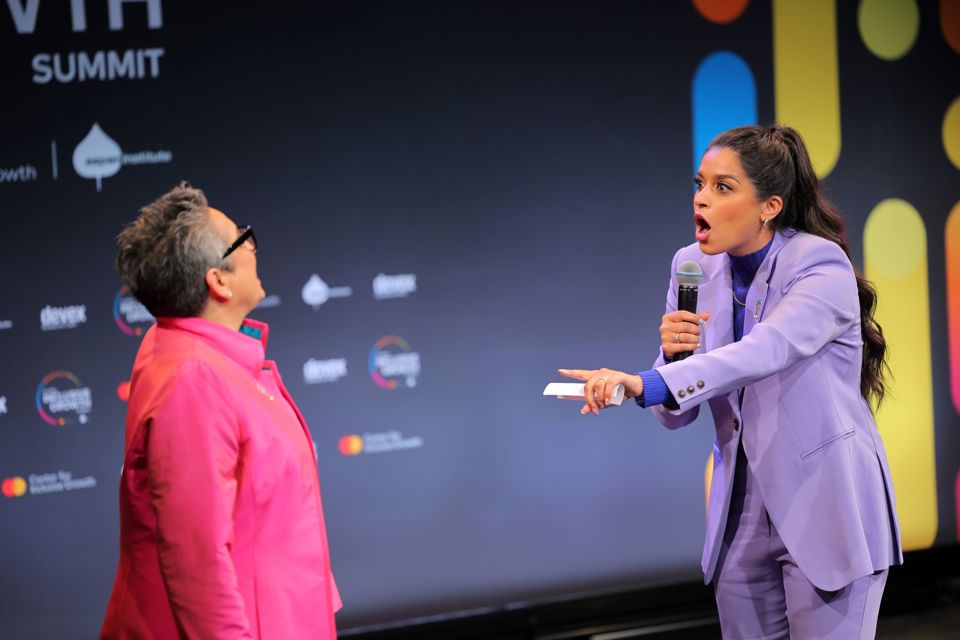 Banner photo: Mastercard Center for Inclusive Growth President Shamina Singh with comedian and YouTuber Lilly Singh. (Photo credit: Isaac Latimer)