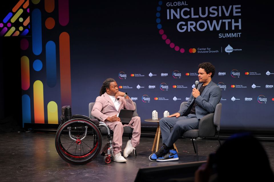 Comedian and author Trevor Noah challenged the notion that inclusive growth and financial inclusion are primarily about charity. He said that people being left out of markets is a failing of those markets. When more people are included, that’s not inclusive growth, but really “complete growth,” he said.