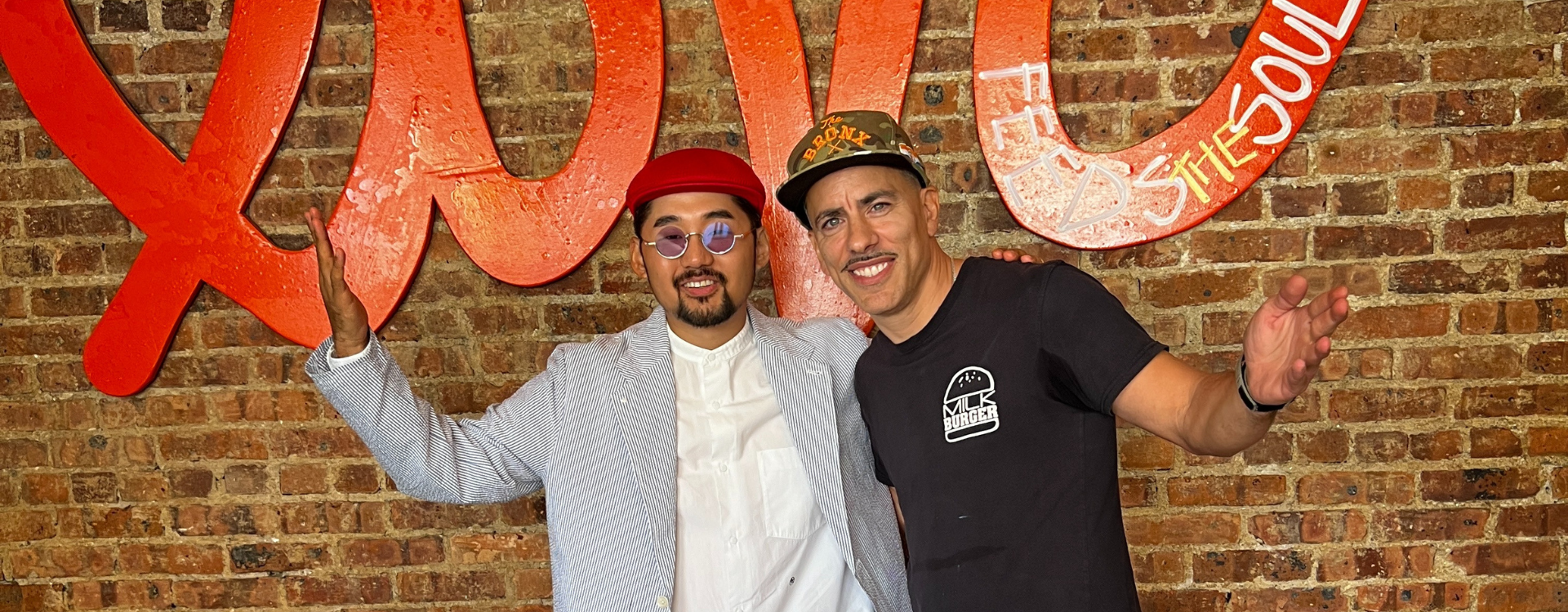 Banner photo: Erik Mayor, right, the founder of the Bronx's Milk Burger, with Cho. (Photo courtesy of Righteous Eats)