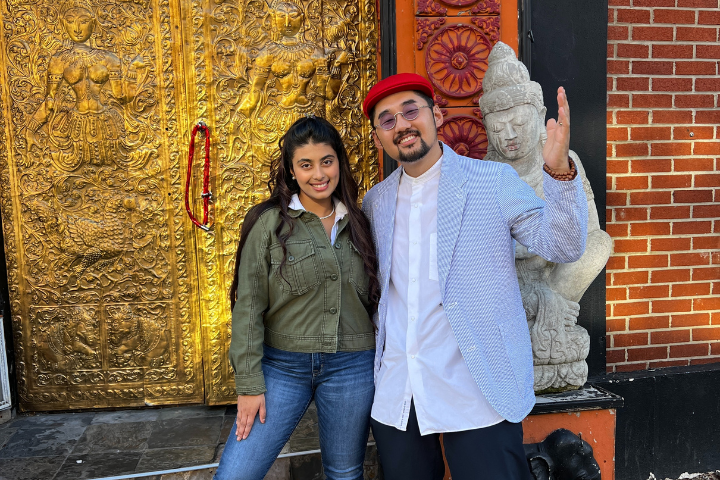 In Staten Island's Little Sri Lanka, Julia Wijesinghe, left, pictured with Jaeki Cho, runs Lakruwana, where her chef mother Jayantha serves up traditional lamprais -- rice, curry, condiments, an egg and a choice of protein steamed inside a banana leaf — and other Sri Lankan classics. (Photo courtesy of Righteous Eats)