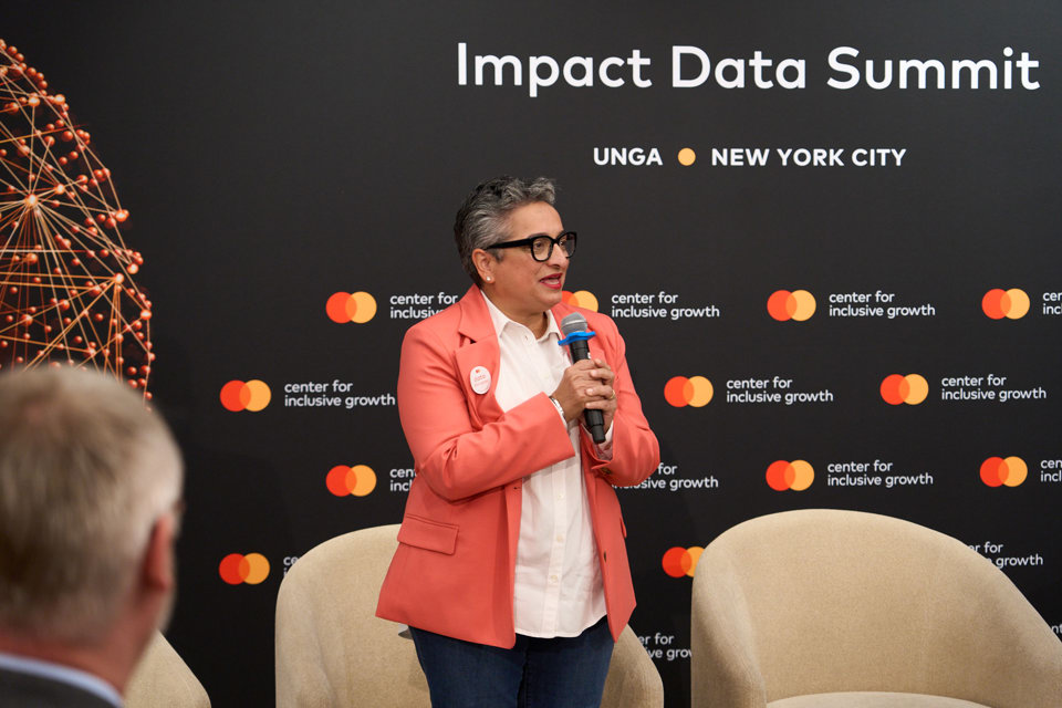 Technology is racing forward, but social impact organizations and the marginalized communities they serve are still at the starting line, said Shamina Singh, the founder and president of the Mastercard Center for Inclusive Growth, at the opening of the summit. "What are the use cases that you all are seeing, what are the things that you're learning? How do we bring that collective knowledge together to collaborate in service of people?" (Photo credit: Awa Dia)