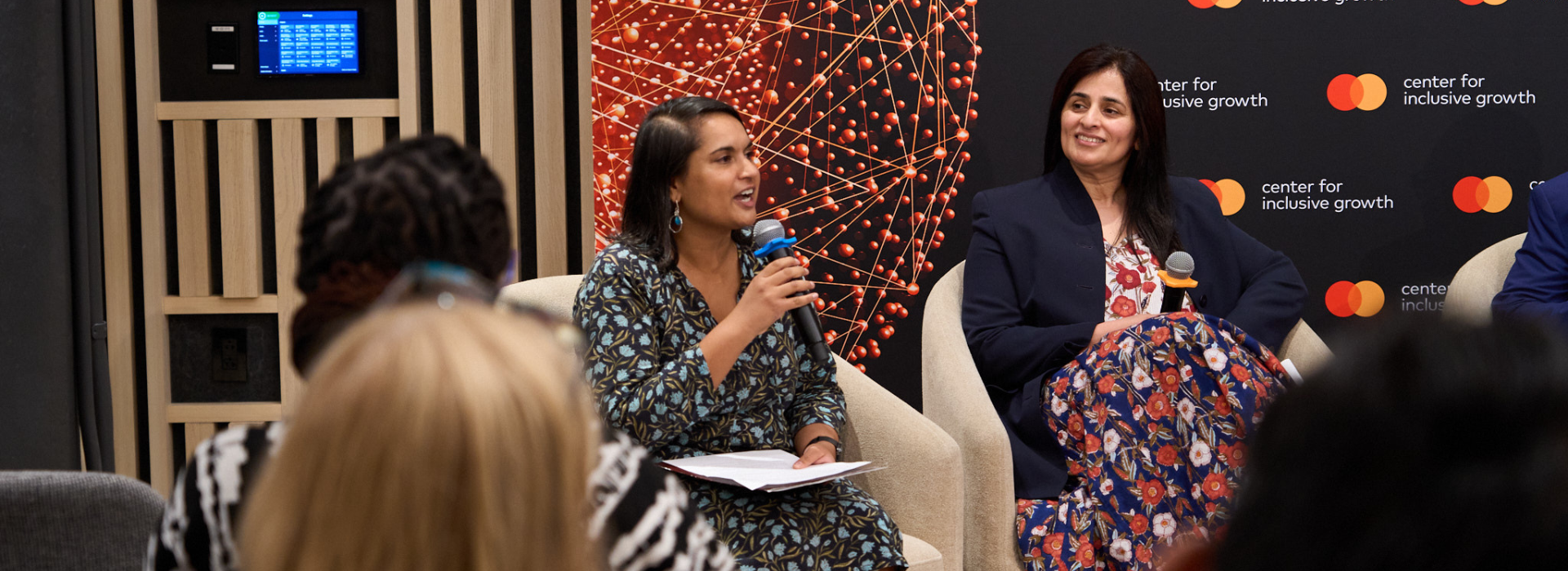 Banner photo, from left, Payal Dalal, executive vice president of global programs at the Mastercard Center for Inclusive Growth, and Komal Sahu, chief of sustainable finance for AVPN. (Photo credit: Awa Dia)