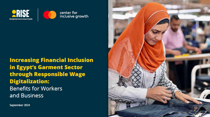 For five years, RISE — short for Reimagining Industry to Support Equality — and the Mastercard Center for Inclusive Growth have partnered with Egypt’s Center for Development Services to digitize payroll in the garment industry, which employs 2.5 million people in Egypt, about 40% of them women. The initiative also aims to build financial knowledge, enabling them to save more and, for women workers who often have limited control over their salaries, to feel more empowered when it comes to financial decision-making.