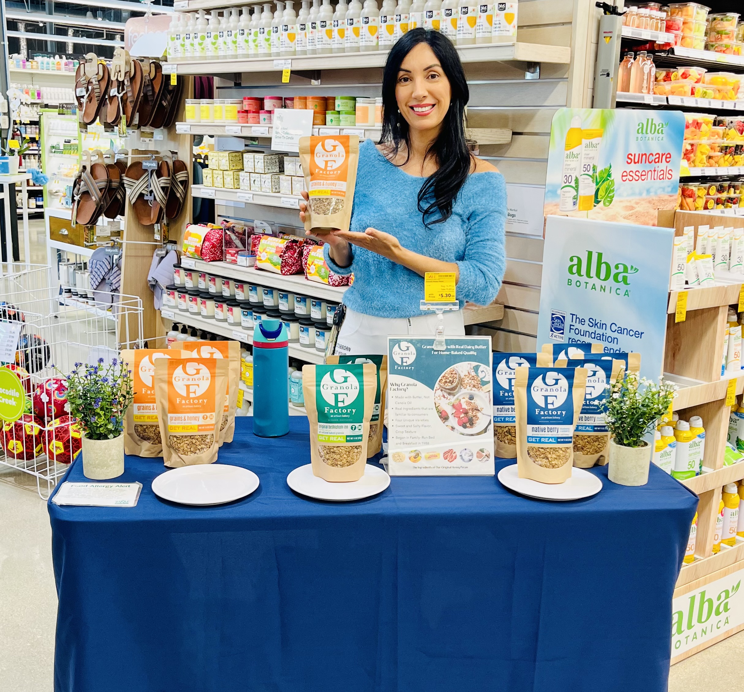 With support from Hello Alice, Miami-based Daniel Quinones has built a business helping up-and-coming natural foods companies market and merchandise their products, including through in-store demos, above. (Photo courtesy of Front Page Retail)