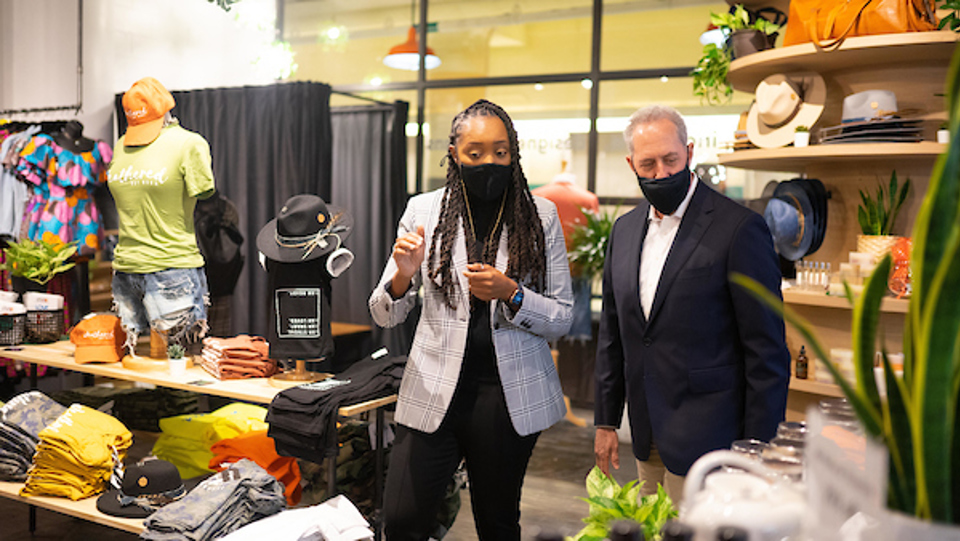 Lakeysha “Dr. Key” Hallmon opened The Village Retail in Atlanta to showcase Black microbusinesses. Mastercard’s Michael Froman participated in a roundtable with some of the entrepreneurs who have benefited from Hallmon’s efforts.