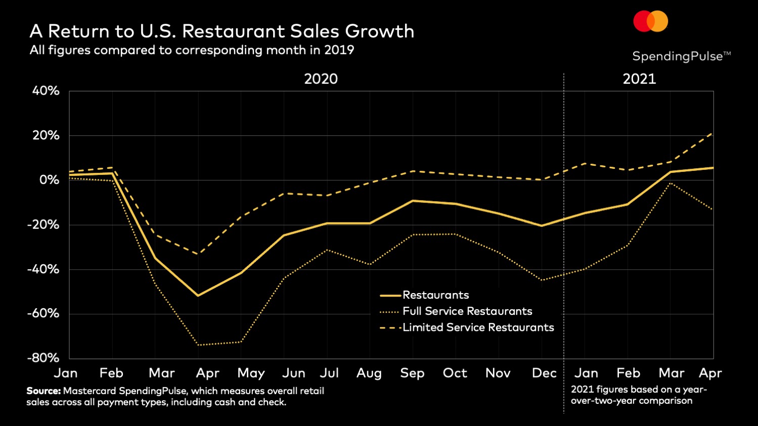 “April's retail sales growth reinforces that the American consumer is healthy and eager to spend, especially on categories such as restaurants, which have faced restrictions over the past year,” said Steve Sadove, Mastercard senior advisor and former CEO of Saks, Inc. “There are a lot of factors at play including stimulus funds, pent-up demand, and the desire to reconnect with friends and family. The fact is that people are excited to gather again and they're refreshing their look for the occasion.”