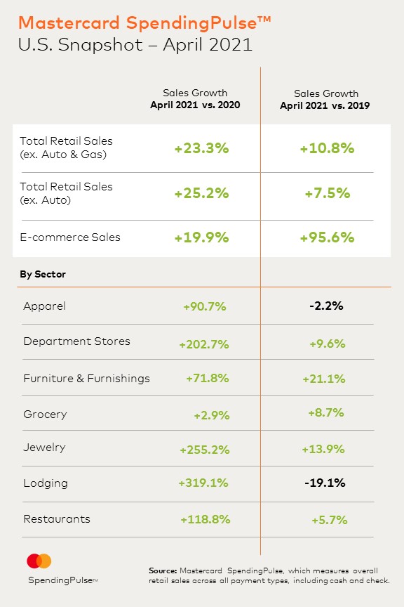 Mastercard SpendingPulse: April U.S. retail sales grow 23.3%* as trends point to a recovering economy